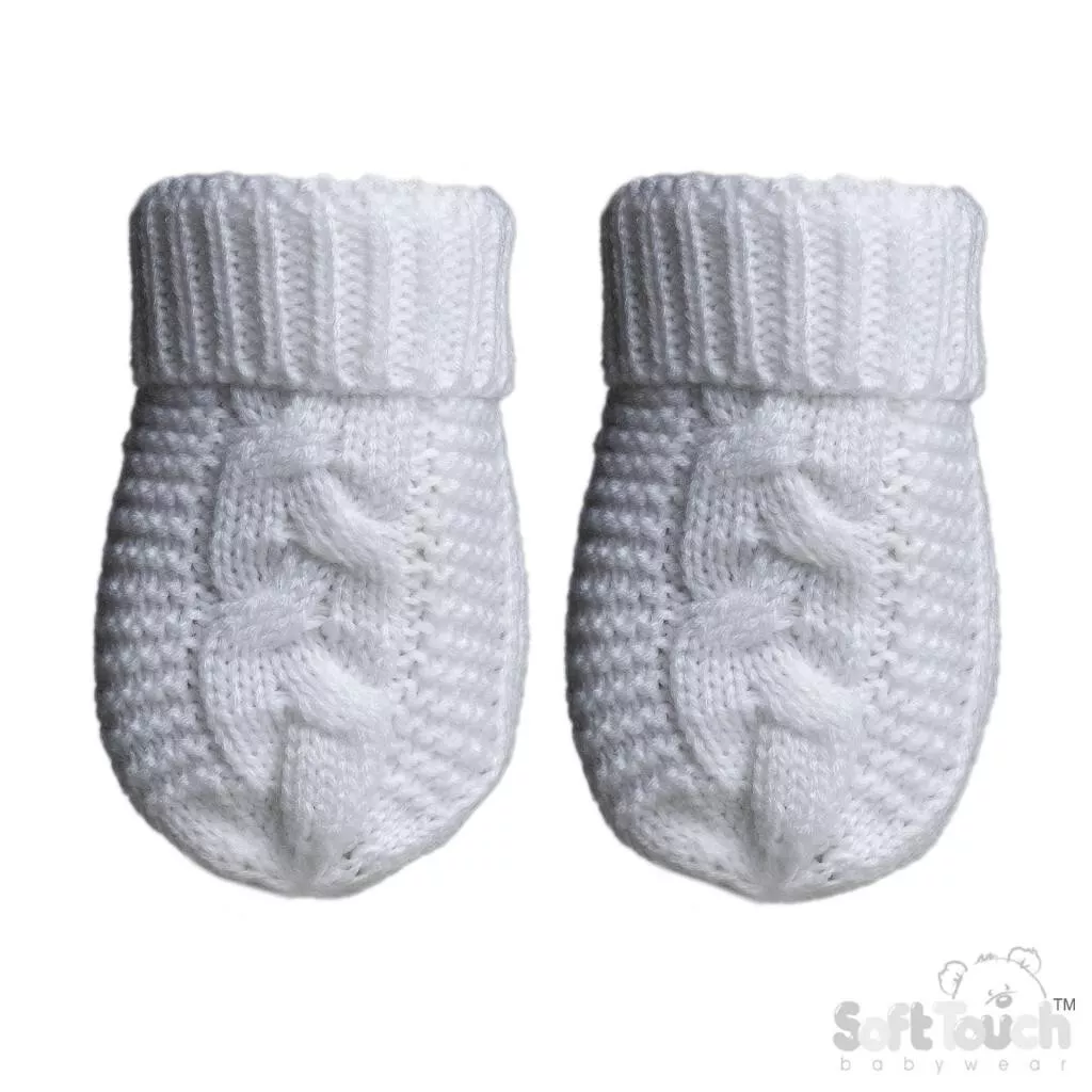Baby “Zero” Cable Mittens by Soft Touch (White, Newborn–12 Months)