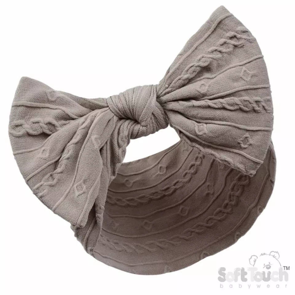 Soft and stretchy, this cable-knit style baby headband is finished with a sweet bow for a classic touch. Designed for comfort and flexibility, it fits babies from newborn to 12 months and makes a versatile accessory for any outfit.