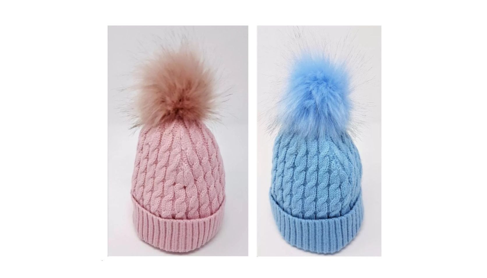 Cable Knit Baby Pom Hat – Sky, Pink or White | Cosy Winter Baby Hat