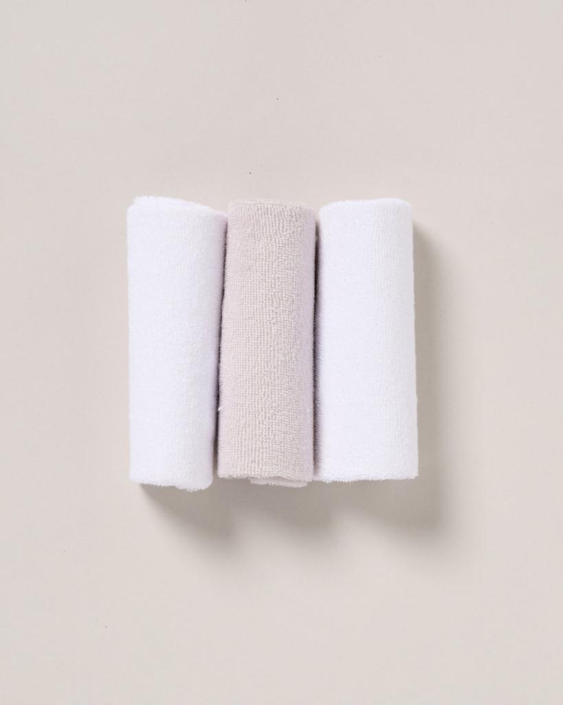 - Set includes: all-in-one sleepsuit, bodysuit, hat, bib, scratch mittens, booties, and 2 washcloths