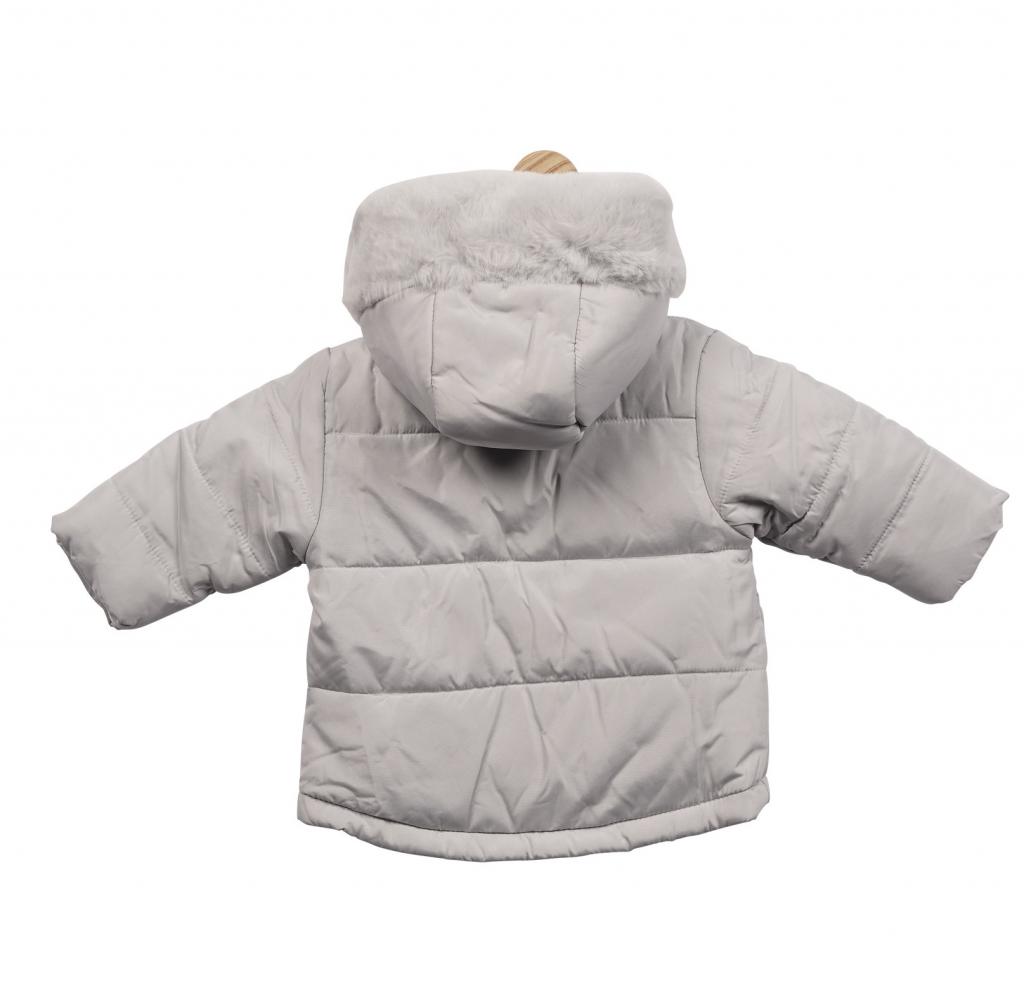 Baby Hooded Coat with Fur Trim – Grey