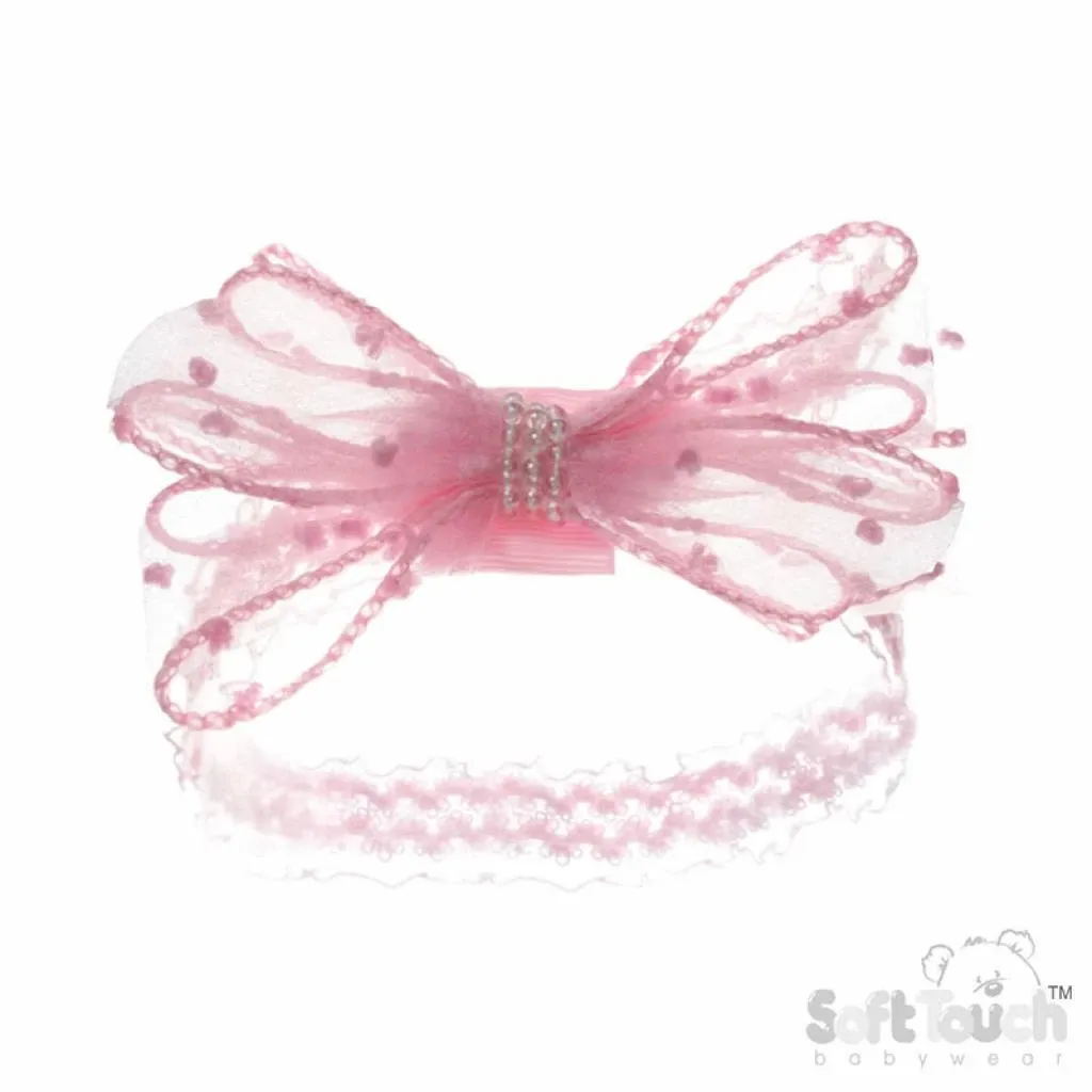 Lace Flower and Pearl Headband by Soft Touch – Pink & White (Newborn–12 Months)