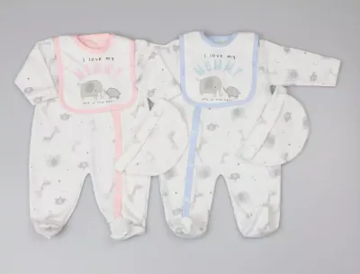3-Piece Set – “I Love My Mummy” All-In-One, Bib & Hat