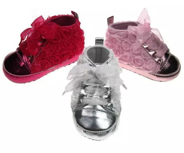 Shiny Rose Trainers with Organza Laces & Gripper Sole (3–6 Months)
