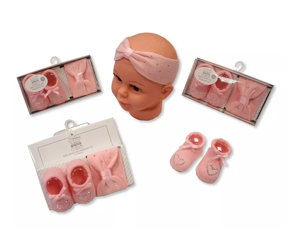 Pink Diamante Heart Socks and Headband Set by Nursery Time – 0–6 Months