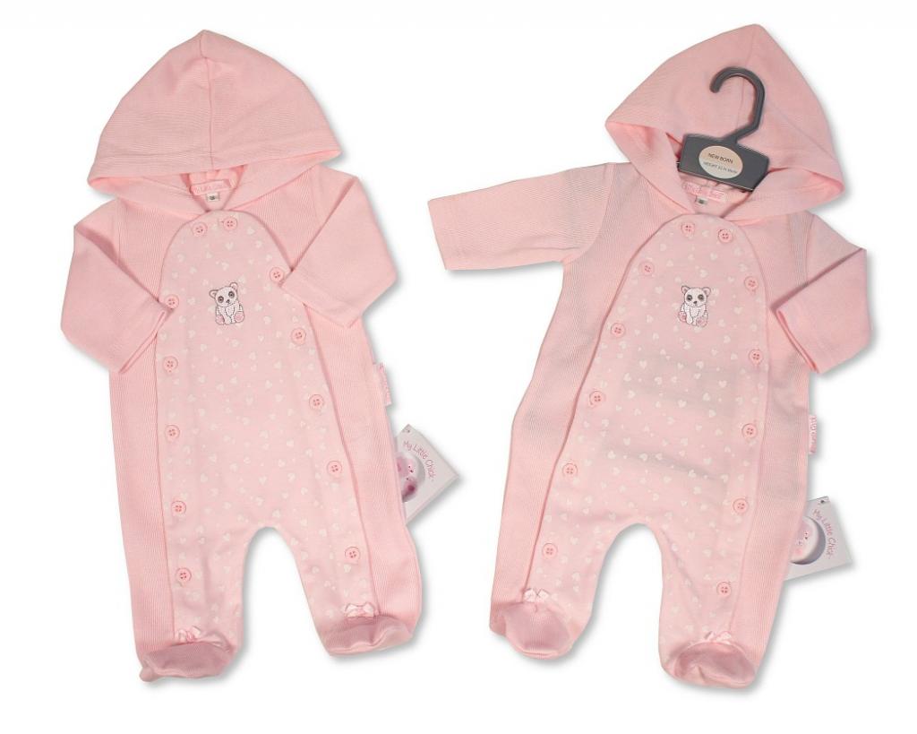 Pink Hooded Bear & Stars All In One by My Little Chick (Newborn–3 Months)