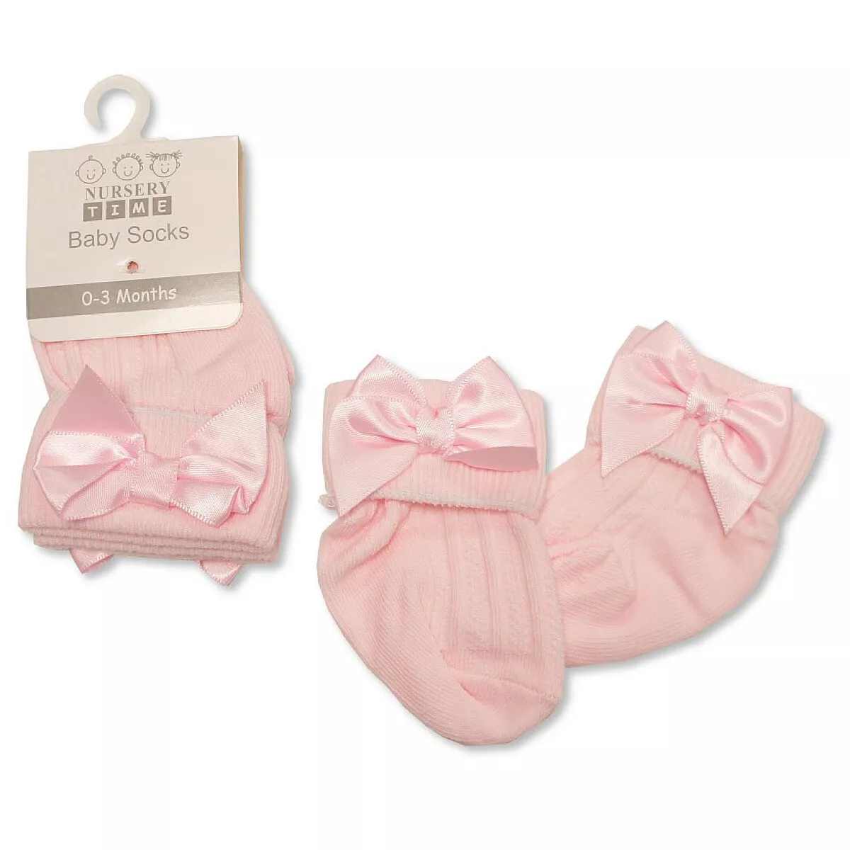 Pink Satin Bow Socks by Nursery Time (0–3 Months, One Size)