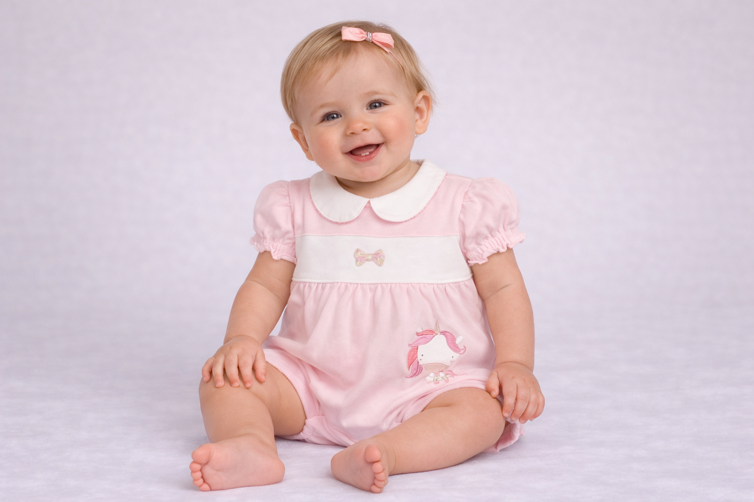 A charming smocked romper featuring a delightful unicorn appliqué for a playful and whimsical touch. Designed in soft, breathable fabrics with a classic smocked detail, it combines comfort with style – perfect for everyday wear or special occasions.