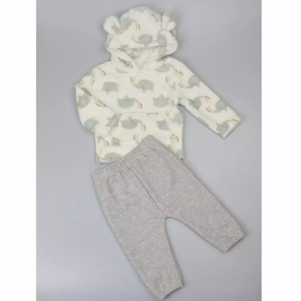 Baby Plush Fleece "Elephant" Hooded Top & Trousers Set – White