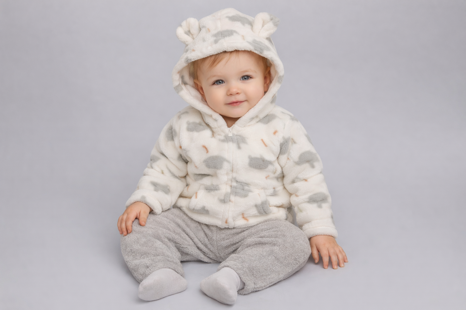 Snuggle up in style with this ultra-soft plush fleece set, perfect for cooler days. Featuring a sweet elephant motif, this cosy outfit is designed for warmth, comfort, and everyday cuteness.