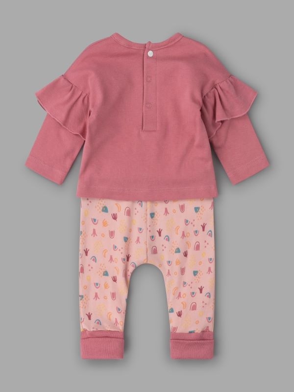 Baby Organic Cotton Ruffle Lounge Set – Rose Taupe Animal Motif