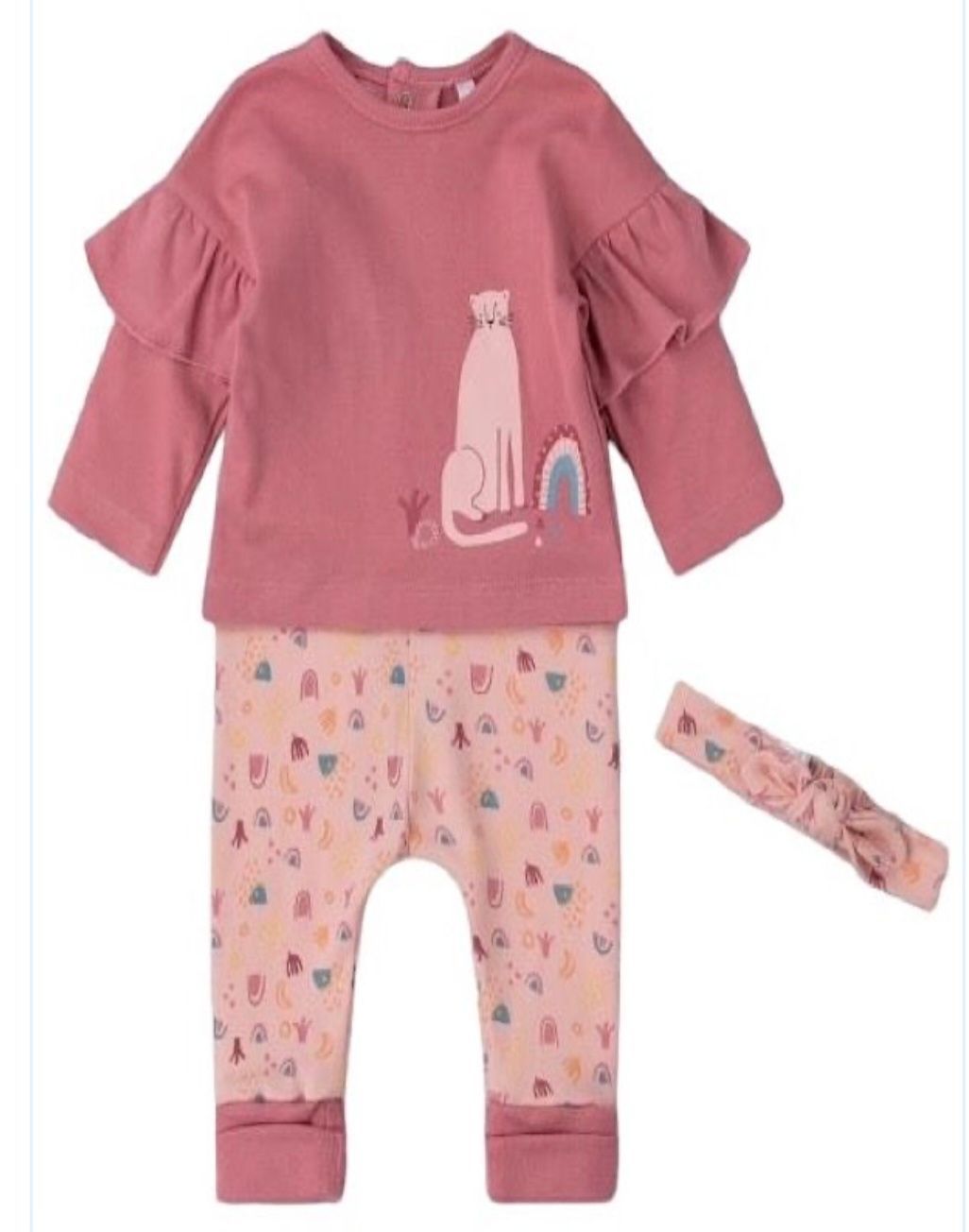 A soft and comfortable everyday outfit with a playful twist. This 2-piece set features a ruffle lounge top with a fun animal motif, paired with matching leggings for an easy and coordinated look. Made from 100% organic cotton, it’s gentle on delicate skin and breathable for all-day comfort.