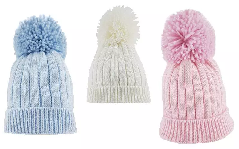 Ribbed Knit Baby Hat with Pom Pom – Pink, Sky Blue, or White