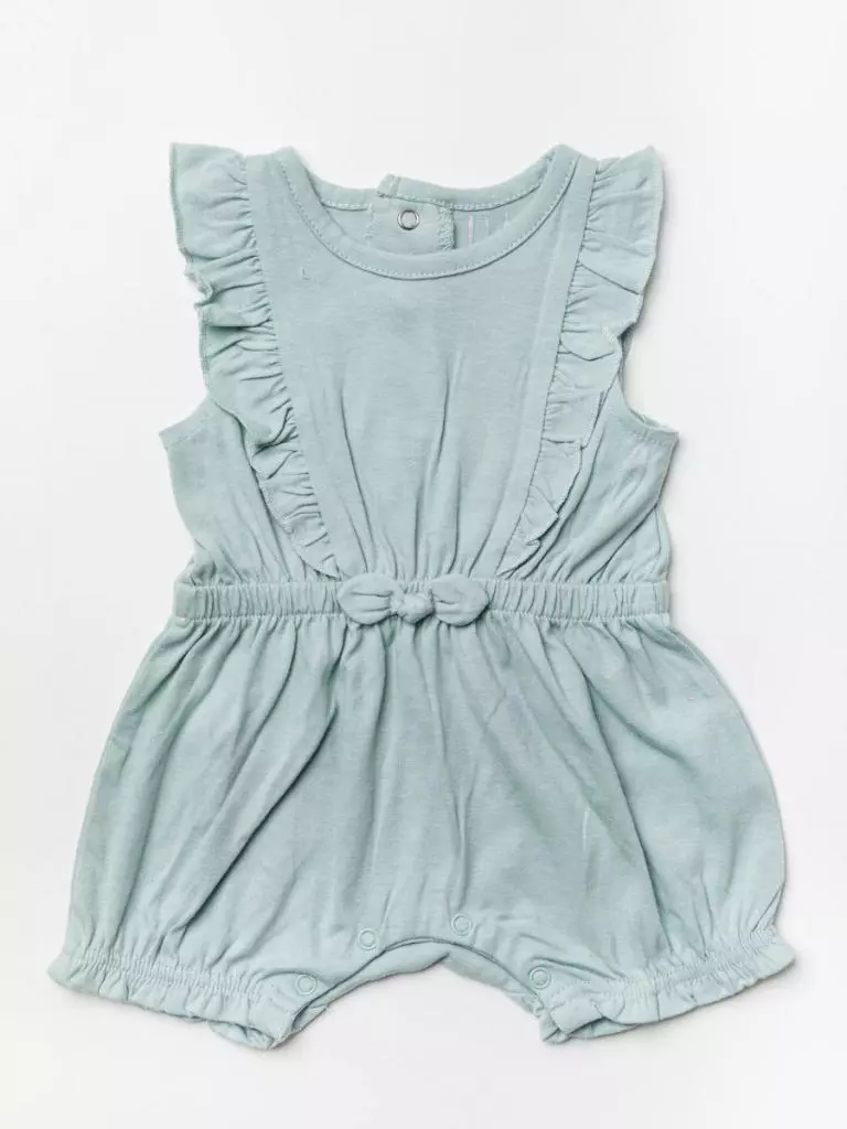 Sage Frilled Baby Playsuit with Waist Bow
