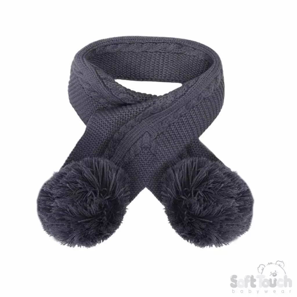 Steel Blue Elegance Scarf with Pom Poms by Soft Touch (Newborn–24 Months) CLEARANCE‼️
