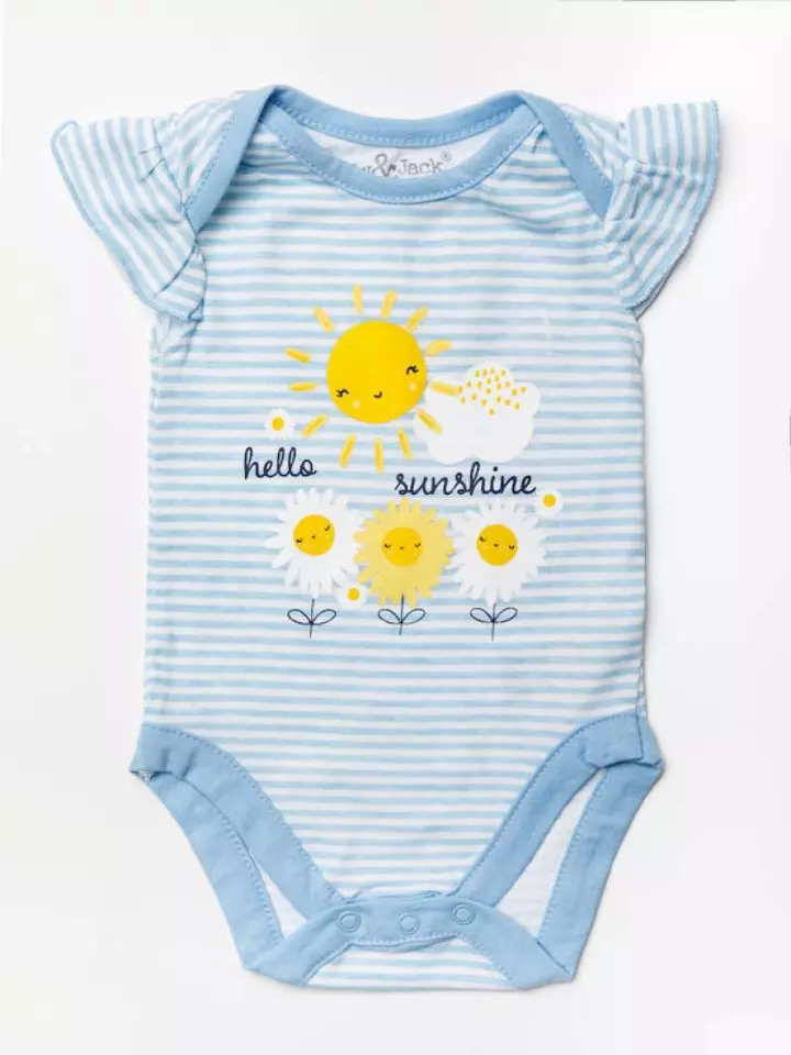 - Soft cotton bodysuit with cheerful slogan.
