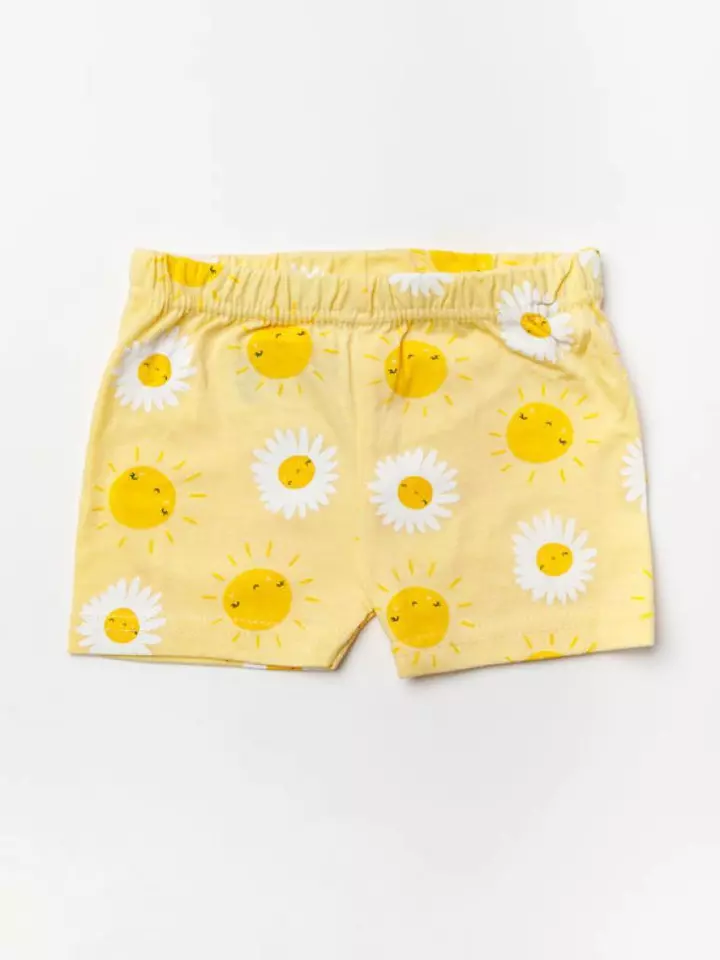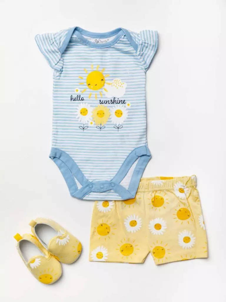 Bright and cheerful, this 3‑piece baby set is perfect for sunny days. The soft “Hello Sunshine” bodysuit pairs with all‑over print shorts and matching shoes, creating a playful, coordinated outfit for your little one.