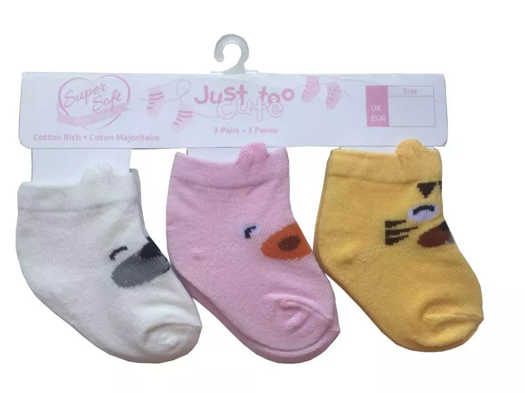 Pack of three adorable baby socks with cute character face designs — soft, comfy and perfect for everyday wear or gifting 🧸💗