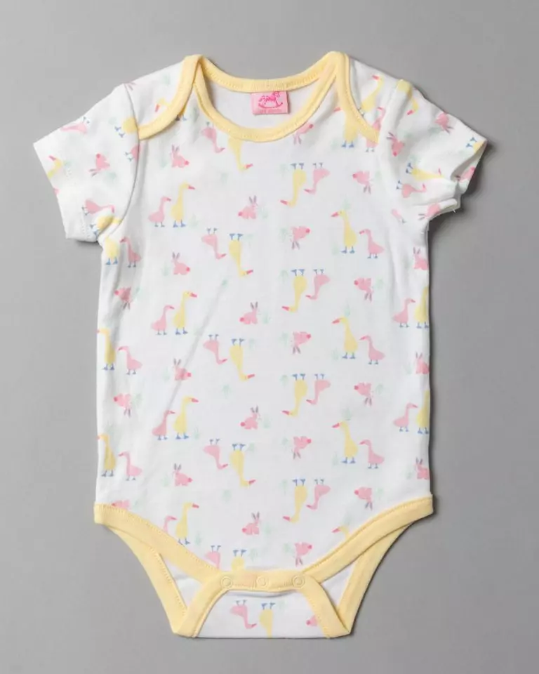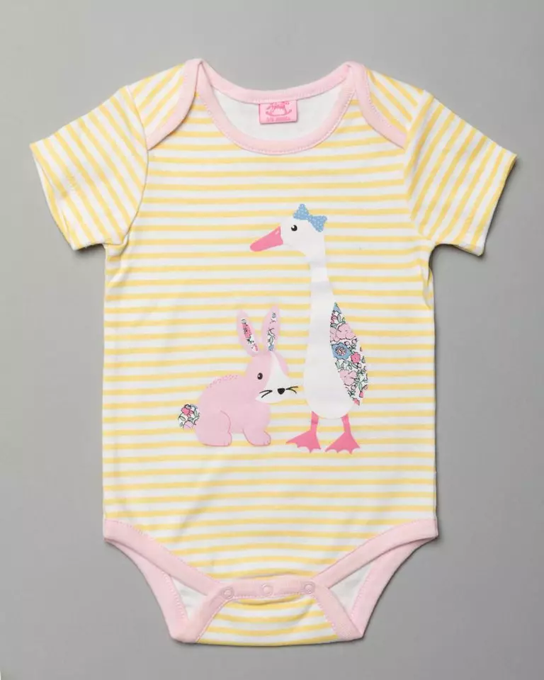 Adorable and practical, these cotton baby bodysuits feature a sweet "Goose & Bunny" design. Made for everyday comfort, each bodysuit includes an envelope neck and poppers to the legs for easy changing.